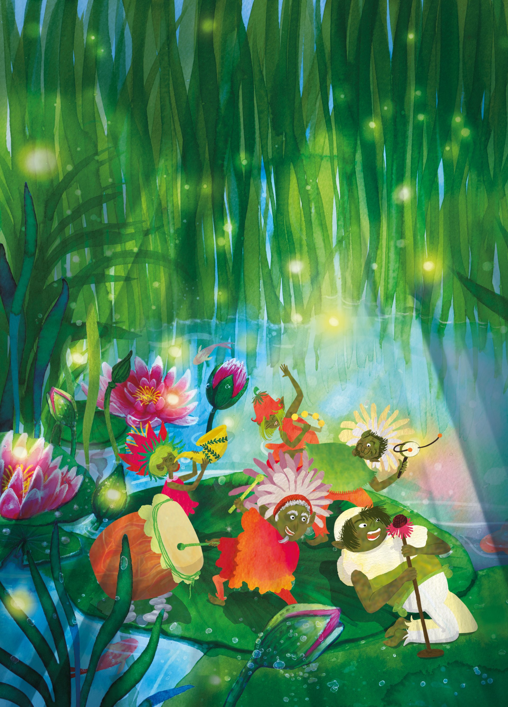 Illustratratrice Jessica Raes creëerde voor onze seizoensbrochure een wereld waarin elfen, kabouters en bloemenfeeën vredig samenleven.