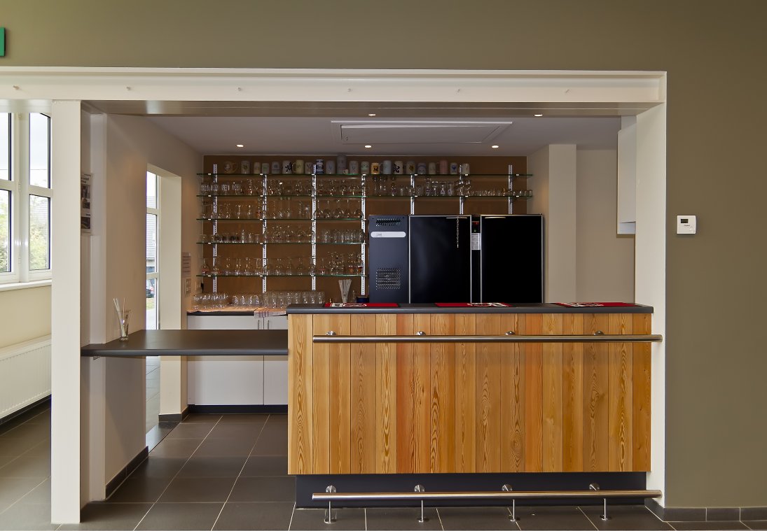 De zaal beschikt over een kleine keuken waarbij het gebruik van het beschikbaar keukenmateriaal is inbegrepen.