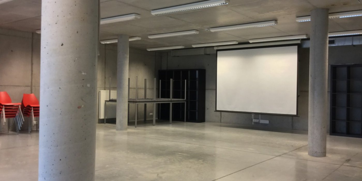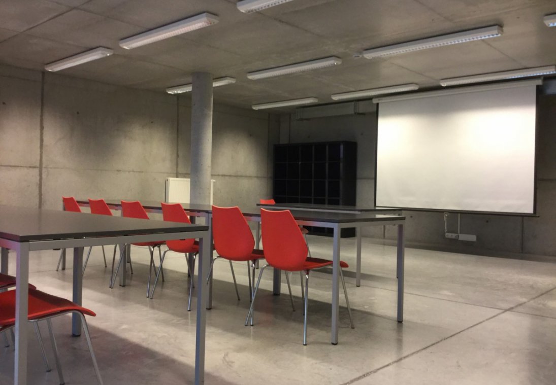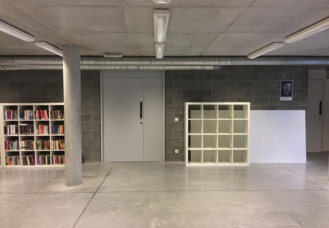 De bibliotheek beschikt over een middelgroot lokaal van 90 m2 op de benedenverdieping.