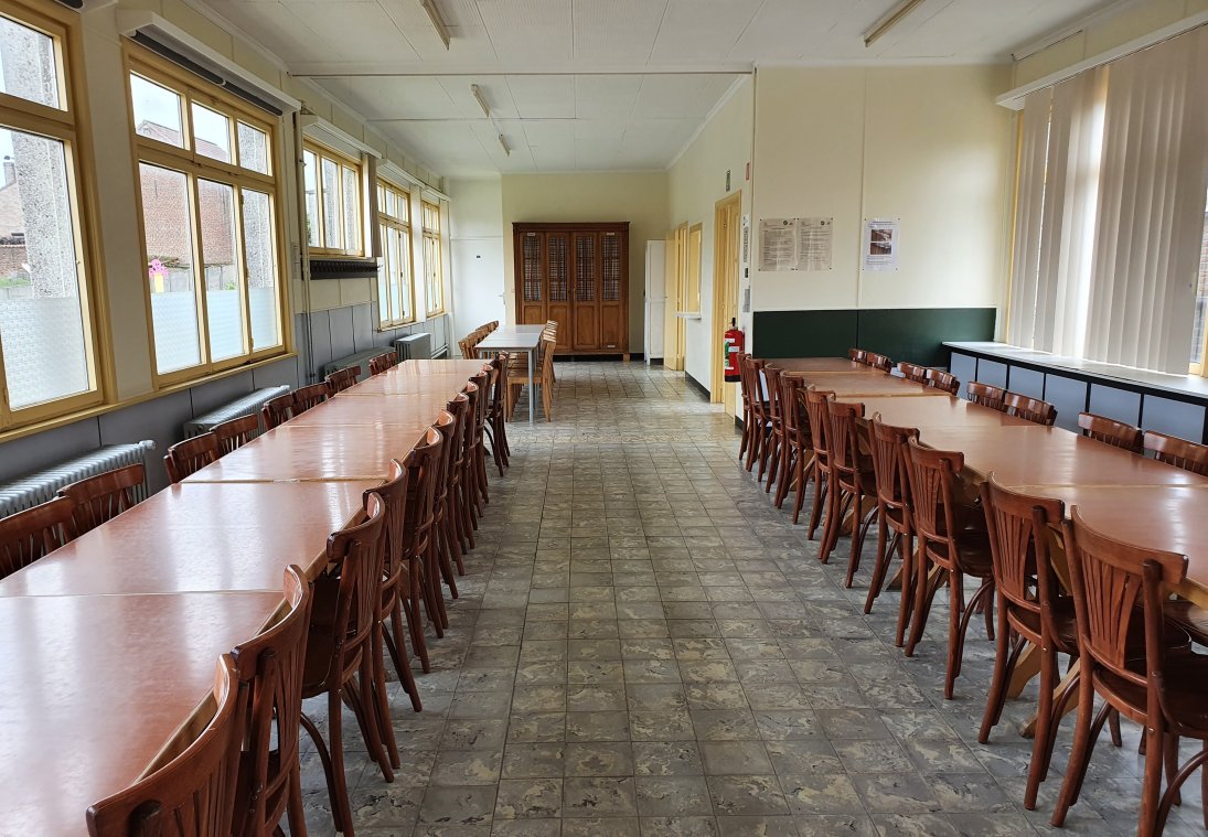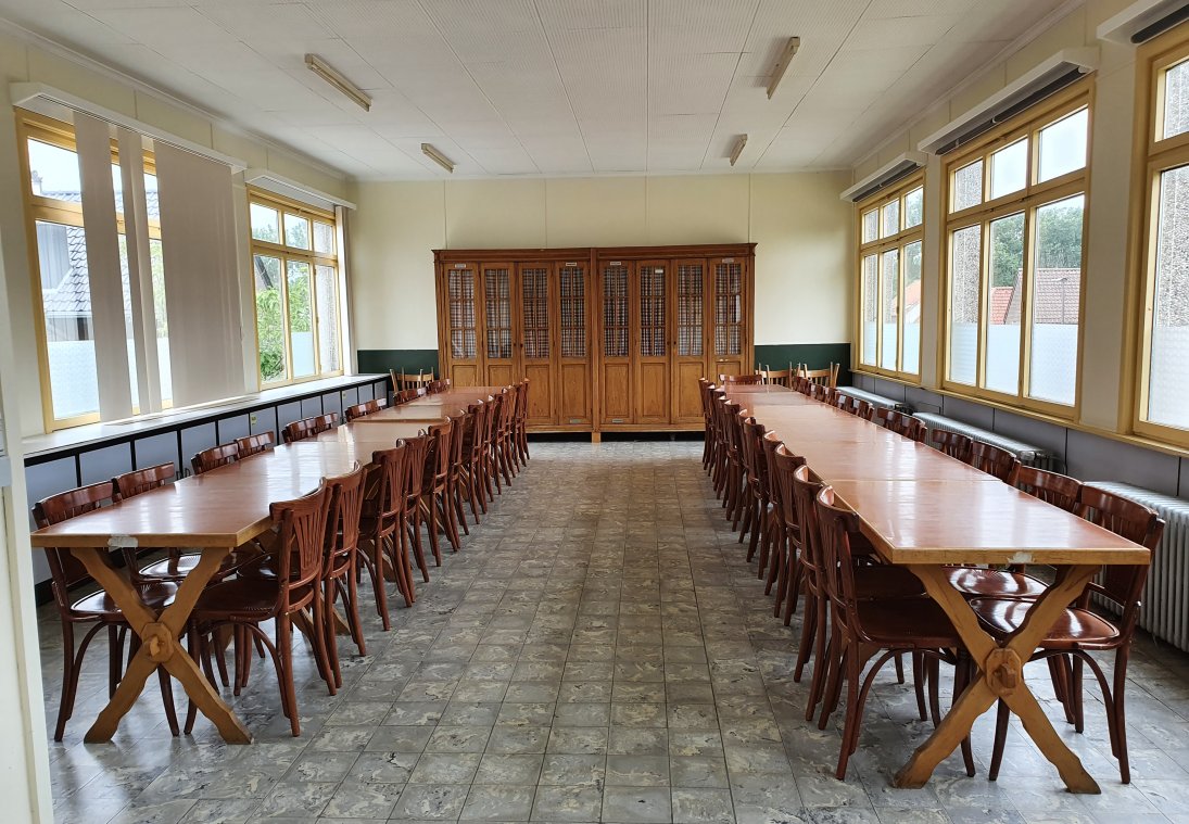 Tafels en stoelen staan in een vaste opstelling en mogen na gebruik blijven staan.