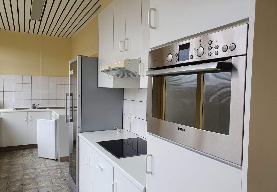 De zaal beschikt over een kleine keuken waarbij het gebruik van het beschikbaar keukenmateriaal is inbegrepen.