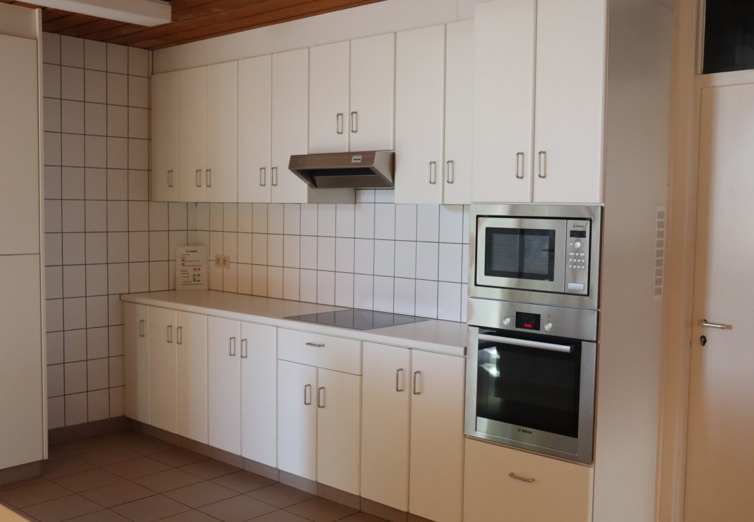 De zaal beschikt over een kleine keuken waarbij het gebruik van het beschikbaar keukenmateriaal is inbegrepen.